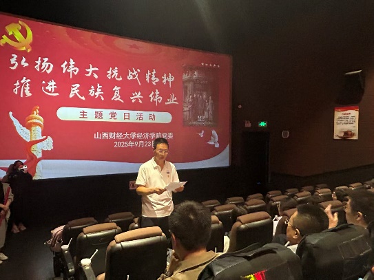 党委深化爱国主义教育、传承红色基因的重要举措。新时代青年不必直面枪林弹雨,但需在学业科研与未来的经济建设战场延续抗战精神。希望同学们从影片与历史中汲取力量,将爱国情怀转化为钻研专业的动力,把坚韧品格融入应对挑战的实践,以“挺膺担当”的姿态破解发展难题,在以中国式现代化推进民族复兴伟业的征程中书写经济学子的担当答卷。