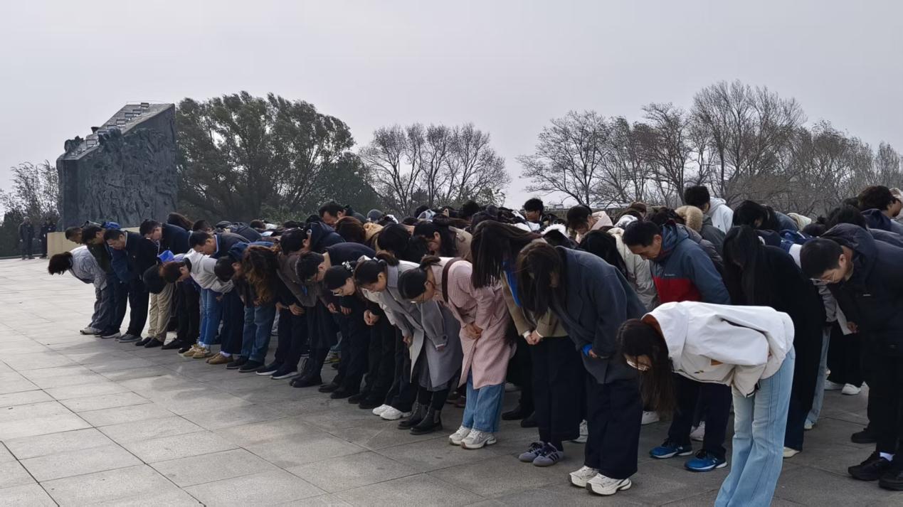 全体师生在百团大战纪念碑前鞠躬默哀
