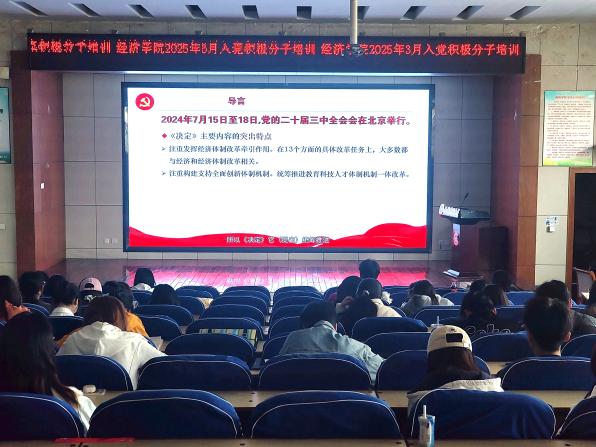 党委组织开展了2025年第一期入党积极分子培训。学院党委副书记秦丽、组织员洪茜、辅导员杨顺帆、党建工作部和全体入党积极分子参与本次培训。