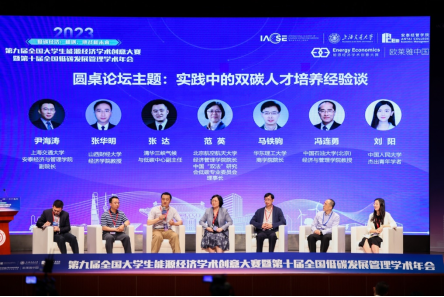 本次大赛的最后环节为圆桌论坛:实践中的双碳人才培养经验谈,我校代表参加了本次论坛并与清华大学、北京航空航天大学、上海交通大学、中国人民大学、中国石油大学、华东理工大学同台交流了双碳人才培养的思路和心得,与会专家对我校双碳人才的培养表示赞赏与好评。