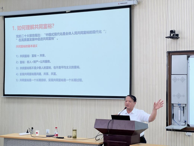 2024年5月22日下午,中国人民大学二级教授、博士生导师张利庠教授应邀来校进行学术交流,开展了题为“基于共同富裕的乡村振兴路径与策略”的理论经济学前沿论坛。本次讲座由一色 副院长刘维奇教授主持,全校150余名师生参与了此次活动。