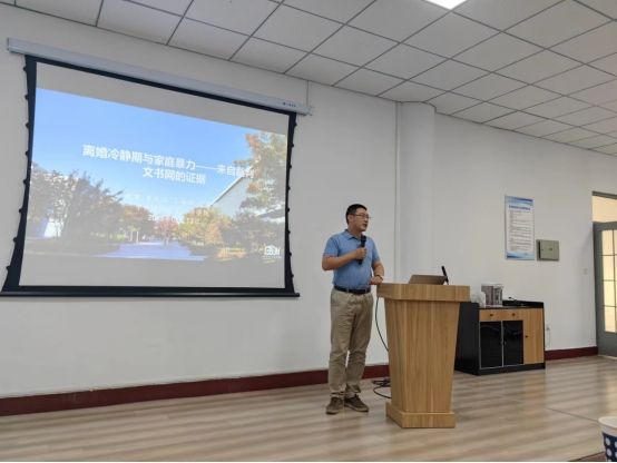 副院长伏霖副教授作题为《离婚冷静期与家庭暴力——来自裁判文书网的证据》的学术报告,分析了“离婚冷静期”政策颁布是否会带来相应的负面效应——家庭暴力增加。该报告通过丰富的数据、严谨的方法向我们展示了一项规范且精致的研究。报告由平台经济产业学院尤亮主持,平台经济产业学院、一色